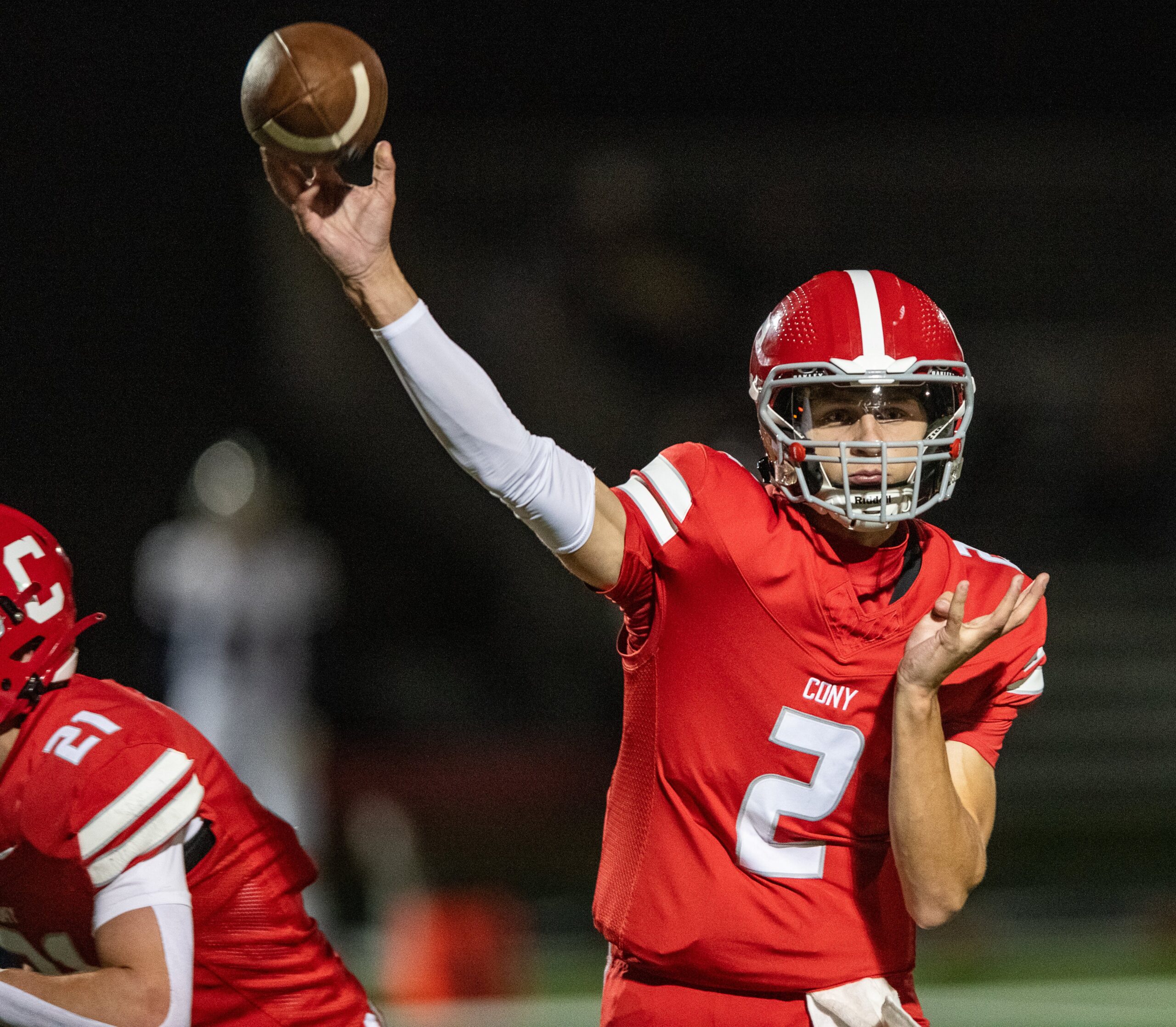 Cony (5-0) was unstoppable through the air in the first half. Morin connected on eight completions of 20 yards or more, finding receivers Anderson Noyes, Landen Perry, Ethan Demmons, and Cooper Clark for touchdown catches of 11, 25, 45, and 25 yards respectively. The Rams scored on every drive of the first half.