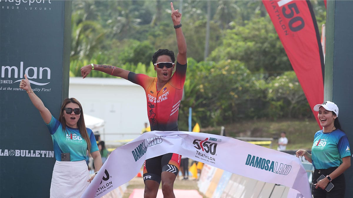 Local athletes Eryk Omandam and Natasha Doromal-Lim emerged victorious in the inaugural Damosa Land 5150 Triathlon held on Samal Island, besting a strong international field and sharing the spotlight on Sunday.