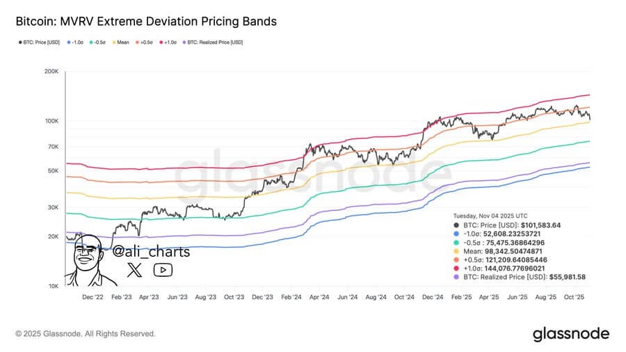 At the time of writing, Bitcoin trades near $102,024 within the descending broadening wedge. If momentum builds and the market environment remains stable, analysts anticipate a breakout toward the $115,000 territory within the next trading sessions.